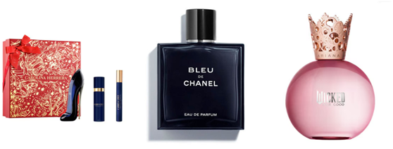 (Left to right: Carolina Herrera Good Girl Eau de Parfum Gift Set - £98.00, Chanel Bleu De Chanel - £89.00-£152.00, Ariana Grande Glinda Bubbly Pink - £55.00)